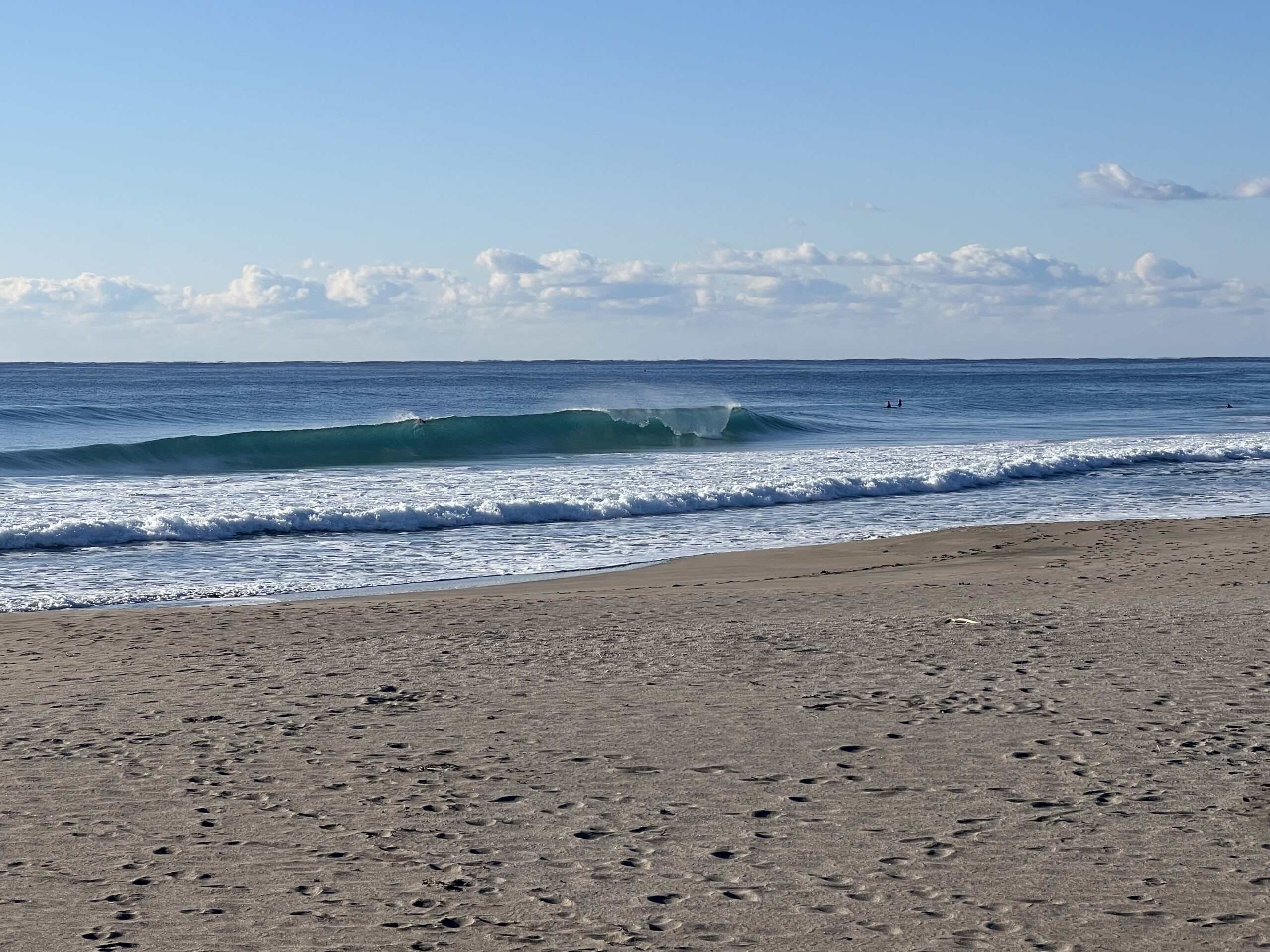 昨日は雪、そしてミゾレ、朝方また雪がちらちら。積雪は無し。午前8時過ぎから青空がのぞく。雪の次の日は波が良い⁈オフショアのコシハラムネ、そんなに良くもなく、悪くもなく。積雪で足止めの人も多いのか?海はさほどの混雑も無し、です。