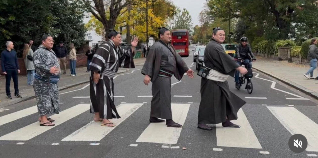 大相撲ロンドン公演での1コマらしいのだけど、関取もなかなか洒落たことやるねー!こういうの大好物です。