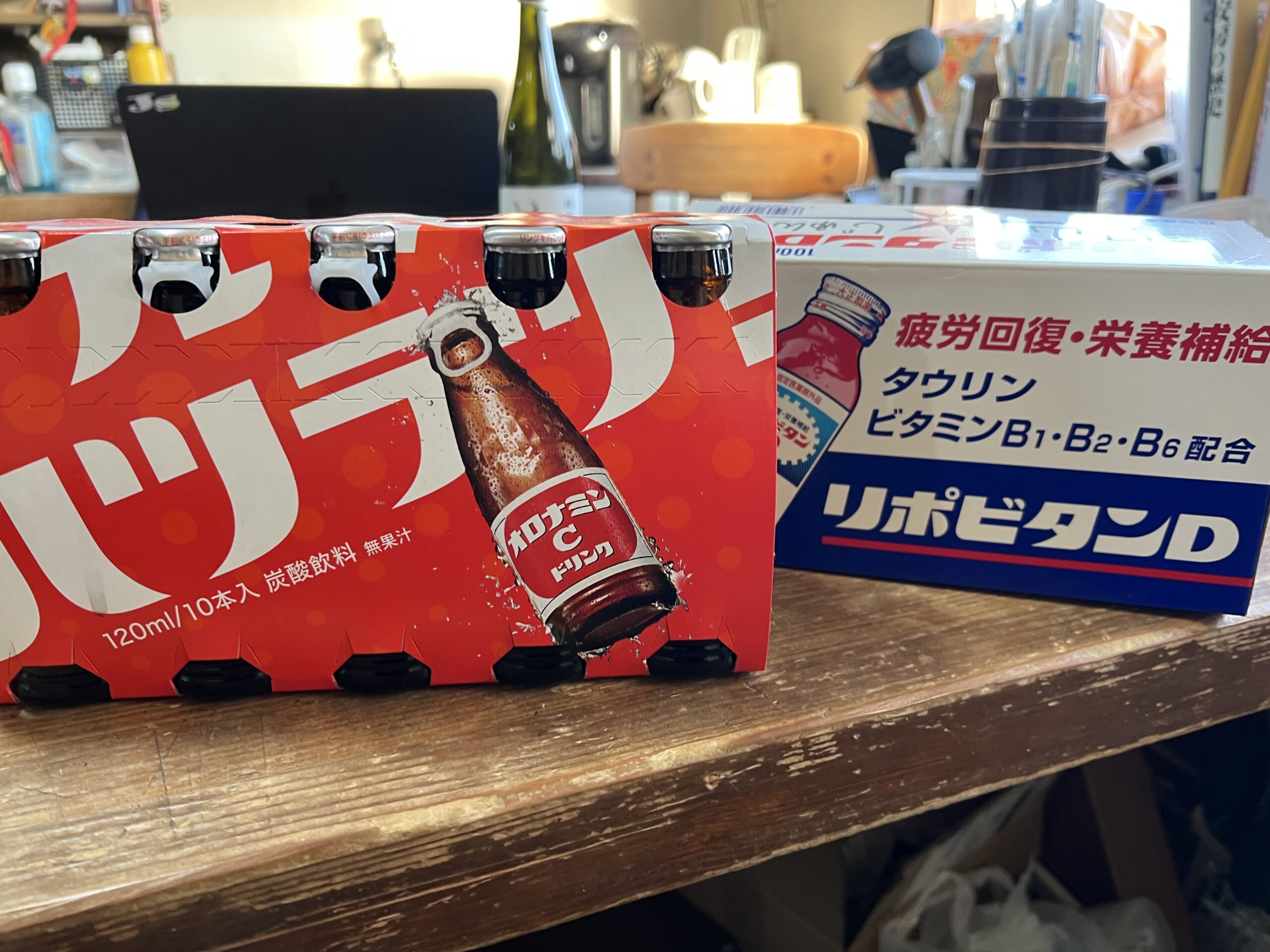 寒い日本でおっちゃん達も頑張っています。昭和チックなスタミナドリンク🔥。モンスターEやレッドブルならポイけどね。