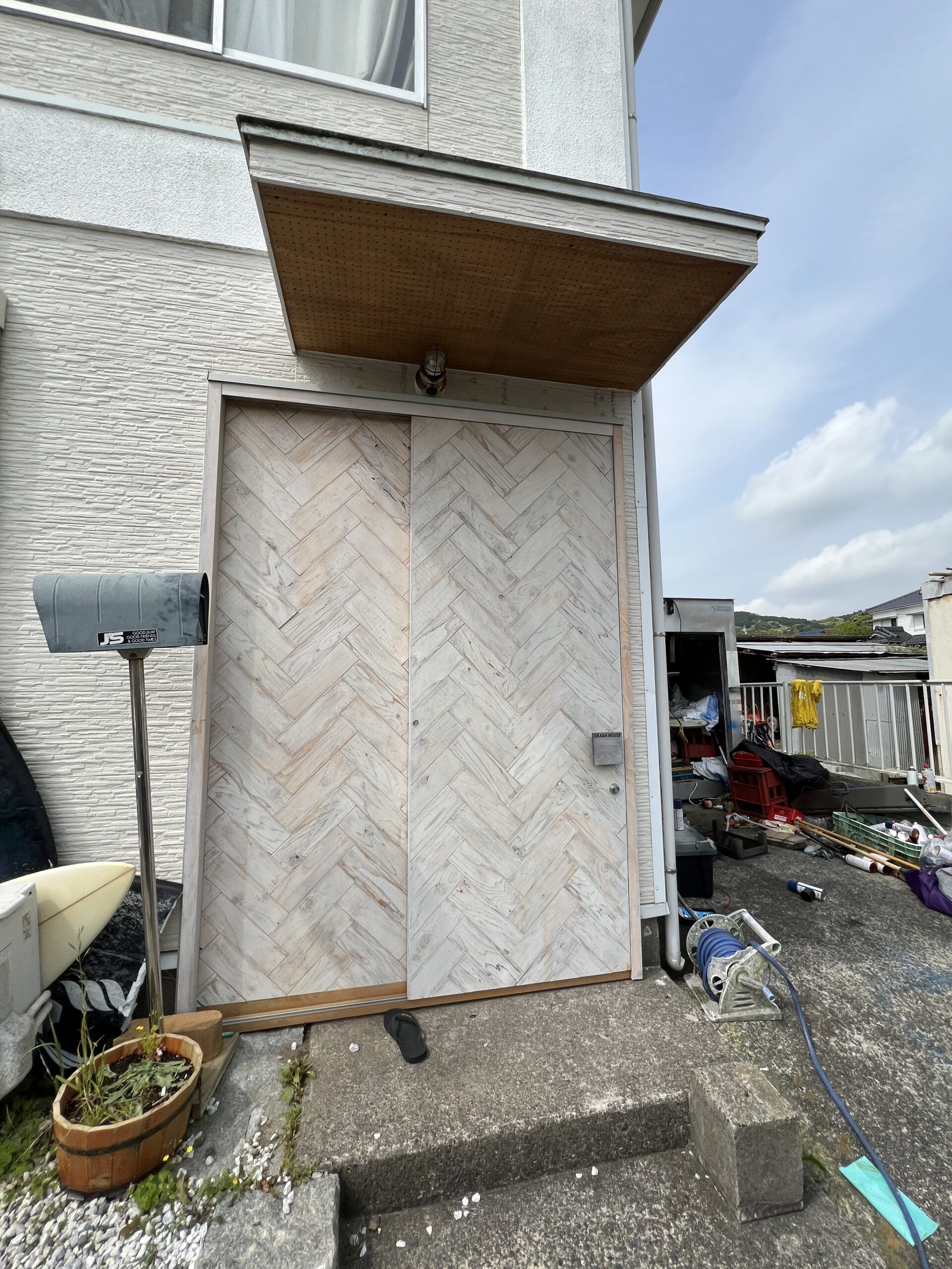 新潟からSATO WOOD WORKSのカズミ社長が登場。2年前にリフォームしてもらった玄関ドアの調整に。⬇️、新潟からのお土産。ありがとうございます😊。新潟WBCの面々も楽しくサーフィン続けているみたい、良かった、良かった。