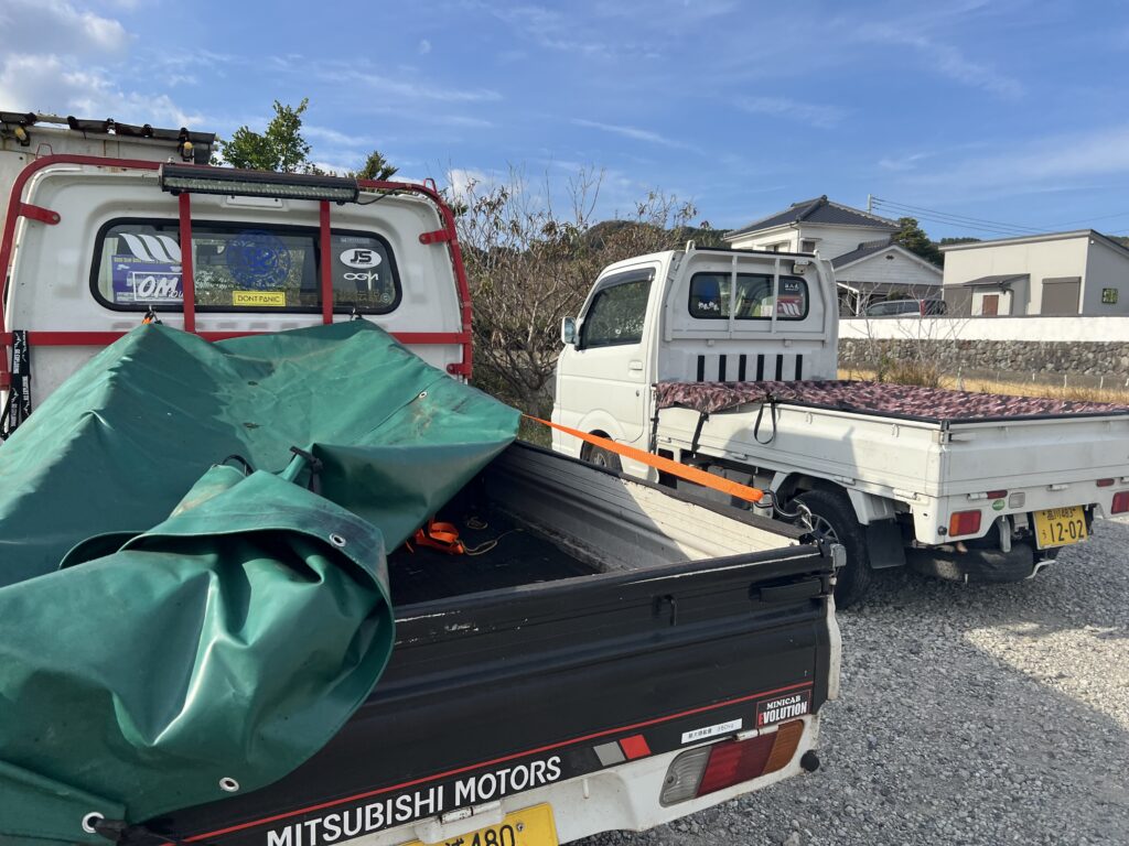 郷に入っては、の言葉通り、軽トラを足代わりに和田浦ライフを楽しむサイジ&ブイチコンビ。ブイチ君は、この車でゴルフ場にも行ってしまうクールな男です。一緒に行きたくはないけど😅。